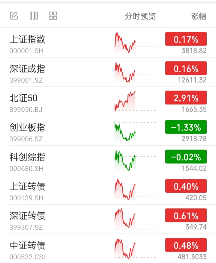 可转债主要指数:全部上涨。今天偏可转债混基可能上涨。