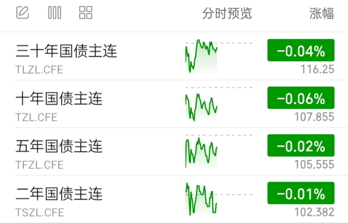 国债期货全部下跌。
