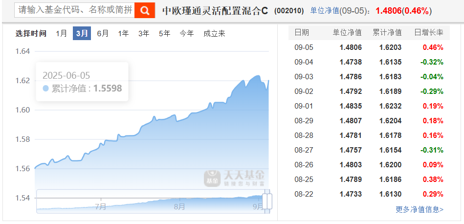 买入$中欧瑾通灵活配置混合C(OTCFUND|002010)$5万元。