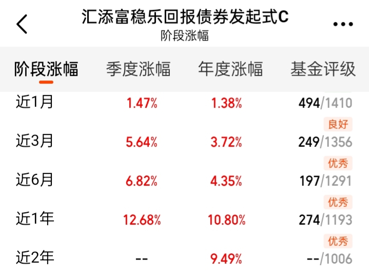 近1月涨幅1.63%,近6月涨幅达5.05%,近1年涨幅达11.76%,各阶段收益稳步攀升,远超许多超长利率债基和多数同类混合债基,业绩表现优秀。近1年最大回撤仅2.11%,而且跌后恢复快,优于大多数的同类。今天股市下跌,正是逢低建仓的机会,司机今天买入5万元。