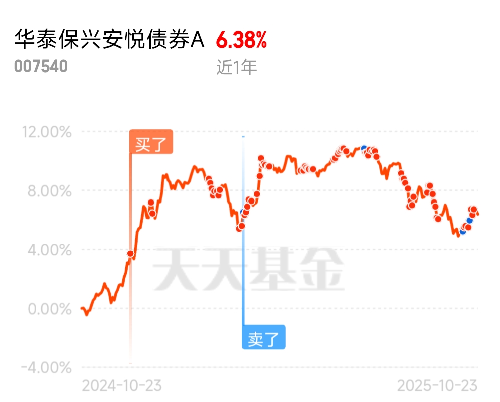 涨了几天有点回调也正常,趋势继续向上就行$华泰保兴安悦债券A$