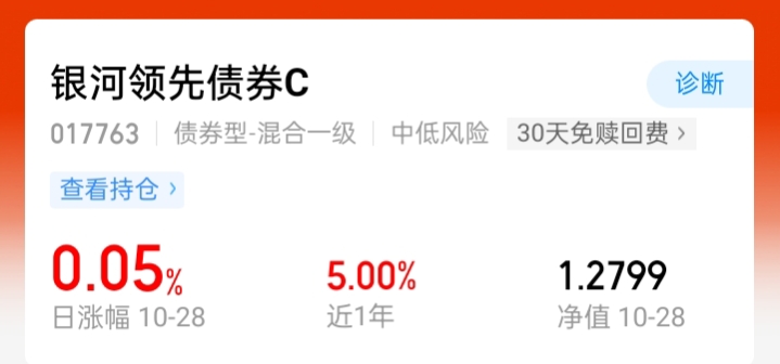 $永赢鑫欣混合C(OTCFUND|018603)$。$方正富邦鸿远债券C(OTCFUND|015909)$ 。$南方中债7-10年国开行债券指数A(OTCFUND|006961)$。$鹏华丰禄债券(OTCFUND|003547)$。$南方中债7-10年国开行债券指数E(OTCFUND|013594)$。$华泰保兴安悦债券C(OTCFUND|020741)$。$国泰惠丰纯债债券A(OTCFUND|007214)$。$华泰保兴安悦债券A(OTCFUND|007540)$。$银河季季盈90天滚动持有短债A(OTCFUND|015350)$
