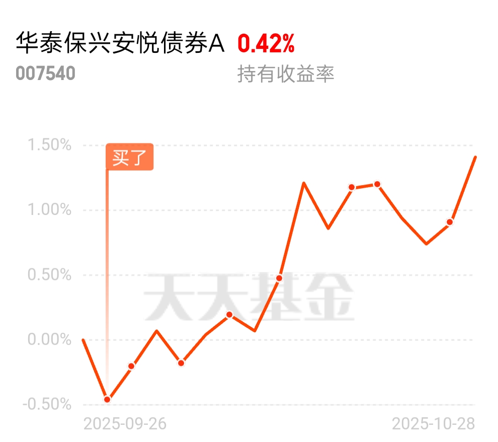 收益转正了,果然还是要坚持才行啊$华泰保兴安悦债券A$