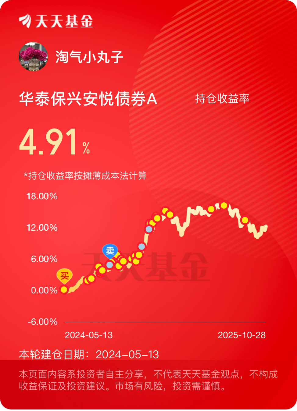 $华泰保兴安悦债券A$债市虽然震荡,但是也开始好起来了,逢低加一点