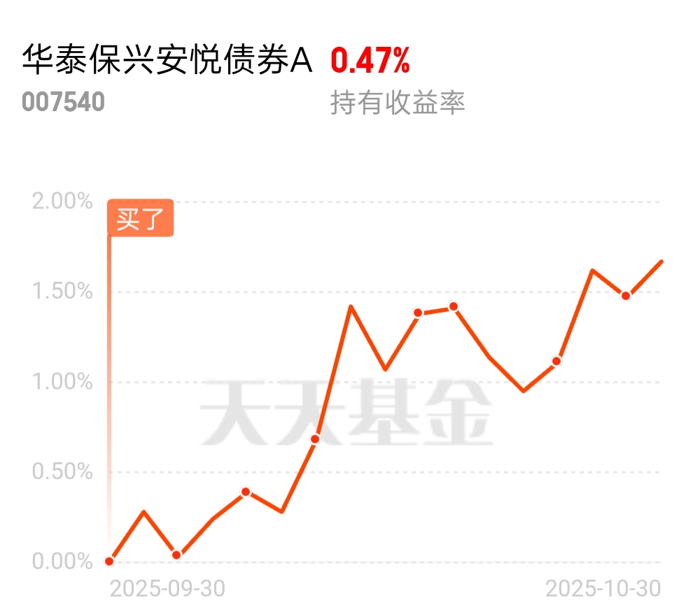 债基逢低加仓总会赚回来的,继续看好你哦$华泰保兴安悦债券A$