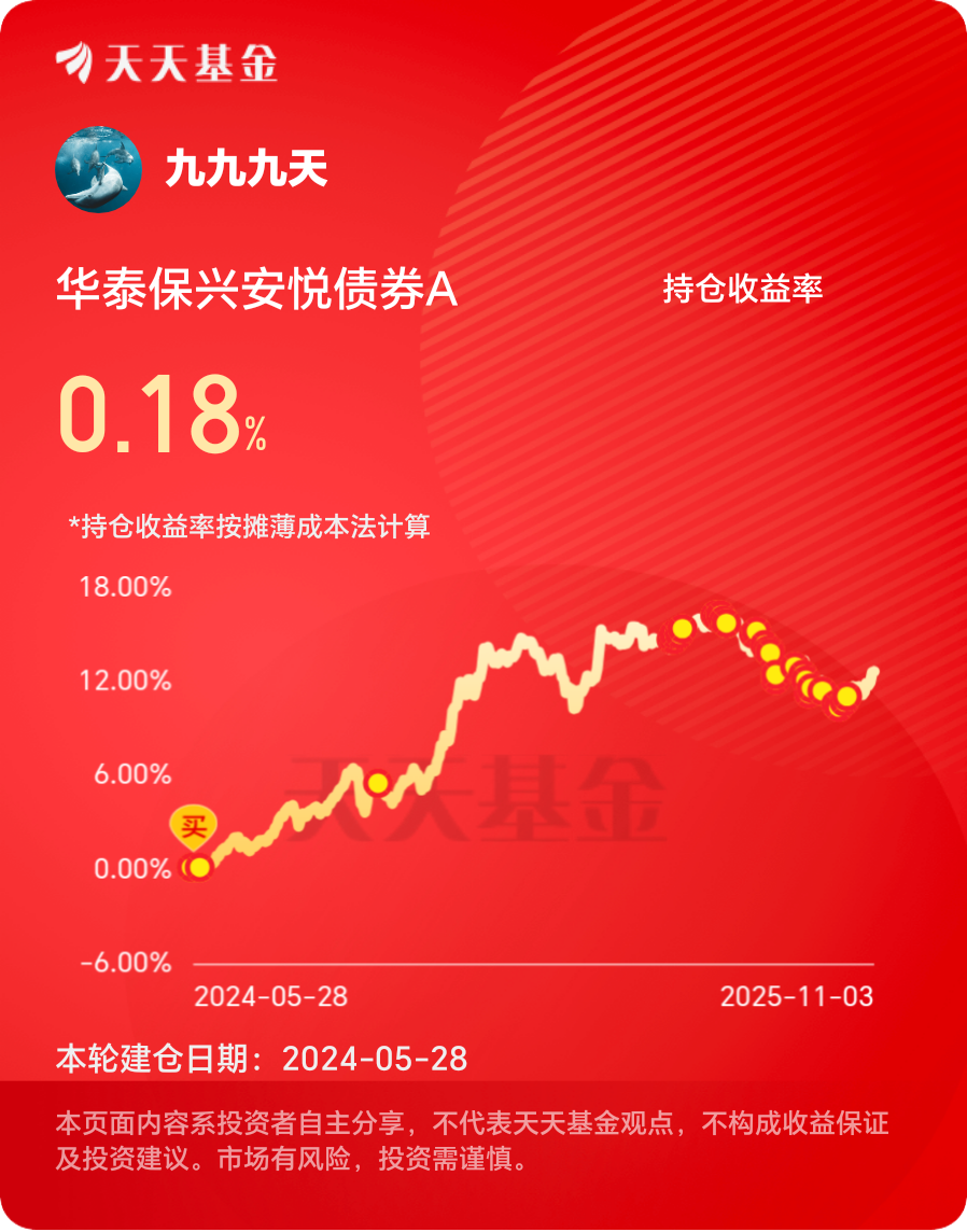 多配债基做防守,降低波动稳心态,用耐心换投资路上的踏实。#晒收益#