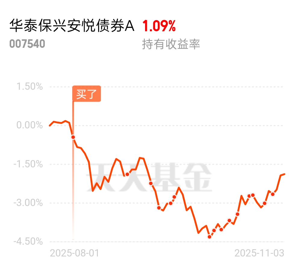 收益已经变正了,果然债市还是要看长期啊$华泰保兴安悦债券A$