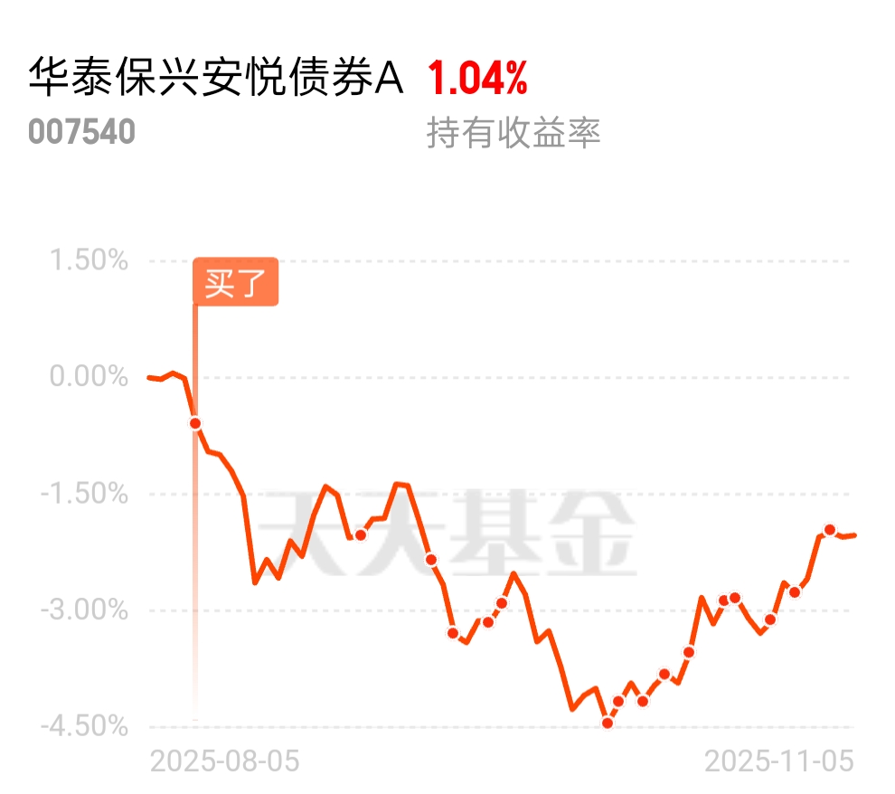 果然还是要逢低加仓,目前我都赚回来了呢$华泰保兴安悦债券A$