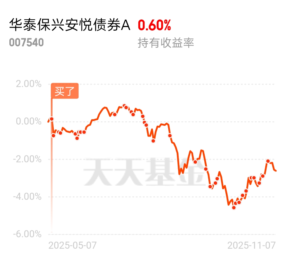 逢低加仓果然没错,目前我已经回本了呢$华泰保兴安悦债券A$