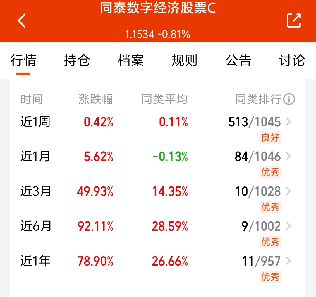 78.90%收益霸榜!同泰数字经济C稳居同类前1%科技型基金,存储芯片/光模块CPO/半导体概念三位一体,中科大技术派基金经理掌舵,布局算力经济未来!$同泰数字经济股票C$
