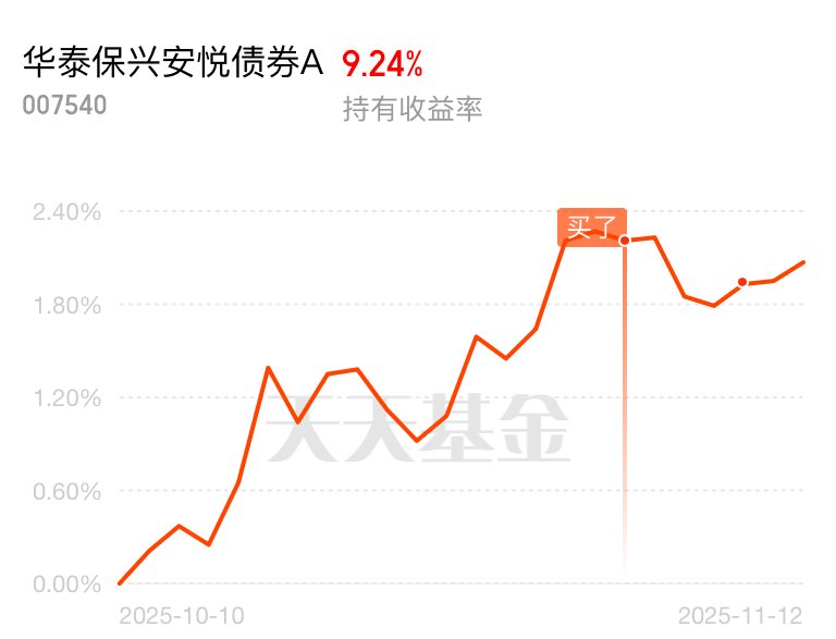 最近行情不错的,可以继续逢低关注一下了!$华泰保兴安悦债券A$
