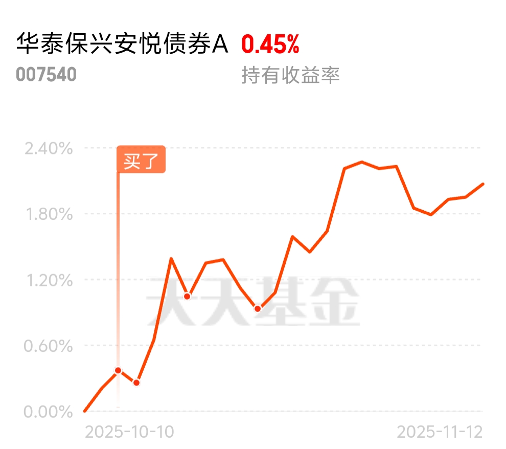 还是挺不错的,$华泰保兴安悦债券A$趋势已经明朗,现在就是耐心