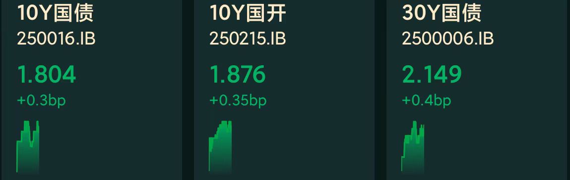 十年期国债收益率:1.804%,+0.3BP(国债收益率越跌,债市越涨)