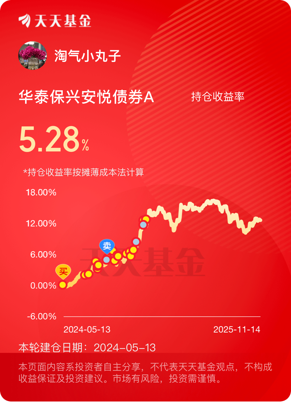 今天要碎蛋,算了投资路漫漫,稳定心态,坚持定投。$华泰保兴安悦债券A$