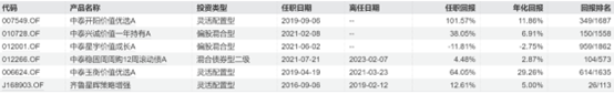 他目前依然在管产品中,除中泰星宇表现较差略不及预期,另外两只产品在同类中排名均比较靠前。
