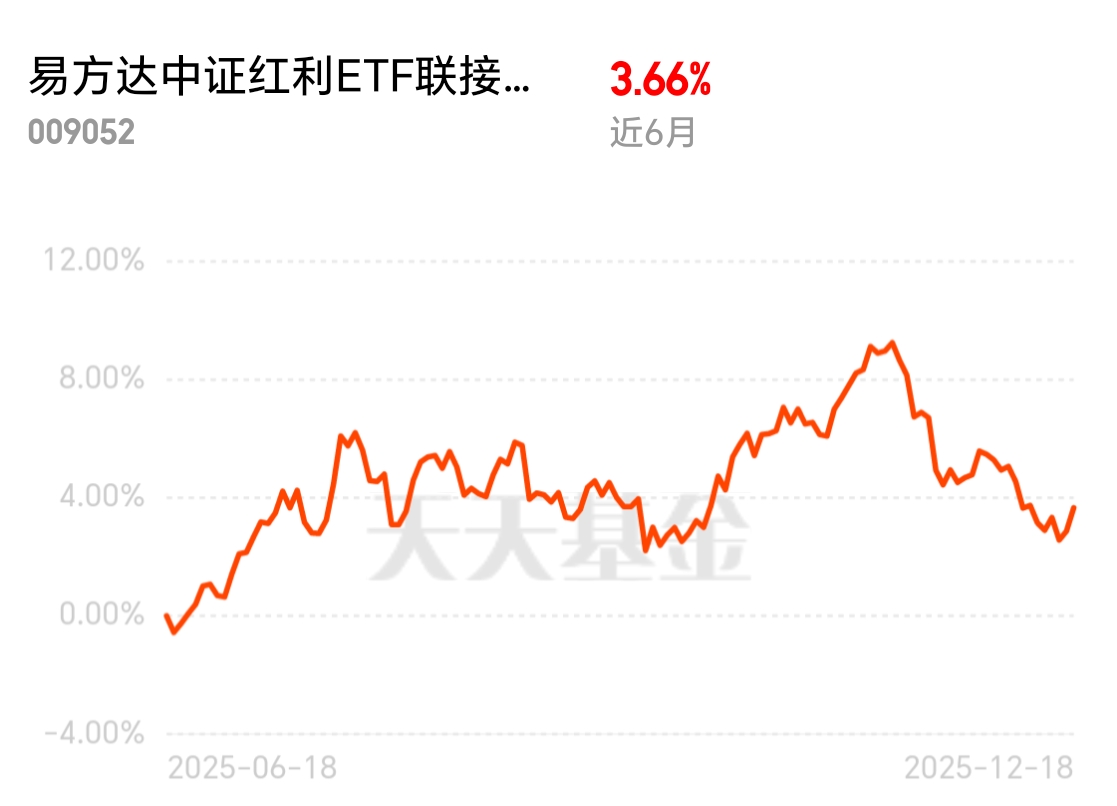 现在市场波动加大,红利策略因稳健受追捧。易方达中证红利ETF联接发起式C近6个月