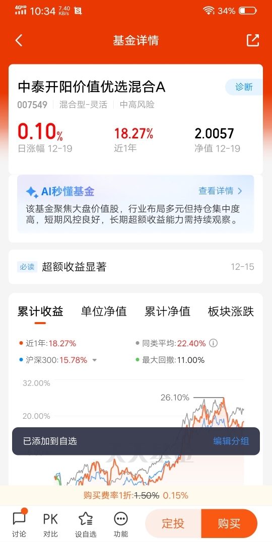 最打动我的是基金的长期业绩,A份额成立以来108%+的回报,大幅跑赢业绩比较基准,这份成绩单在震荡市中格外亮眼。我自己的持仓收益率也远超预期,尤其是在市场大幅波动时,基金的抗跌性让我感受到了“质价双优”的投资价值。田经理逆势买入优质低估资产、坚定卖出回报率不达标标的的操作,正是价值投资的精髓,也让长期持有变得更有底气。