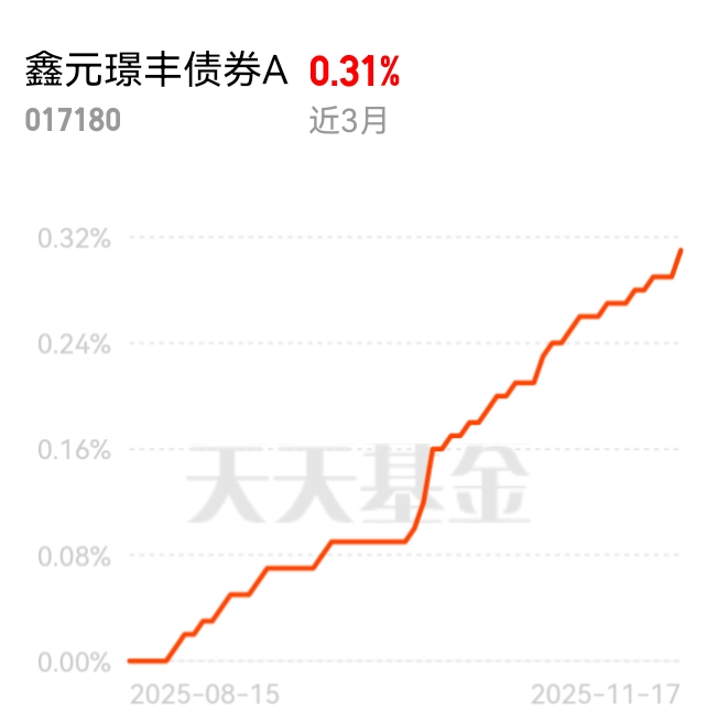现在大家理财都看重稳字当头,债基刚好契合这个需求。鑫元璟丰债券A表现稳健,近3个月收益0.31%,没有大起大落的焦虑,只有稳稳的收益累积,把闲钱投这,既能保值又能慢慢增值,太适合普通投资者了。