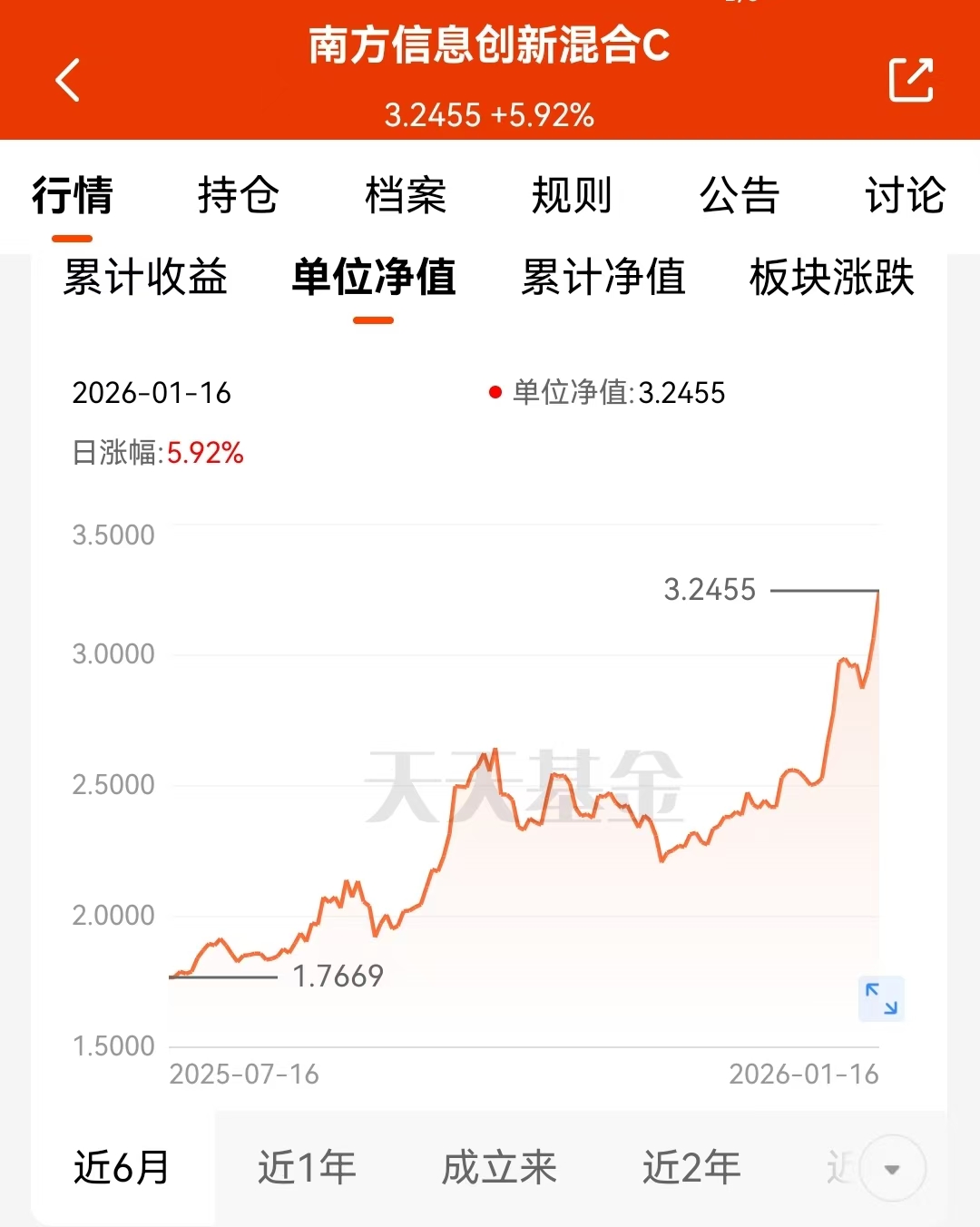 今天买了点$南方信息创新混合A$(007490),这基金最近涨得很猛,一周就涨了10%,近一个月更是涨了34%。我看它主要就是投资半导体的,这个行业现在挺有意思,感觉明年盈利空间会很大。这基近一年收益都超过100%了,说明基金经理抓机会能力强。现在这位置我觉得还在启动阶段,热度又高,真的可以看看,我今天就买了一点试试。#重磅利好!航天科技将全力突破重大技术#