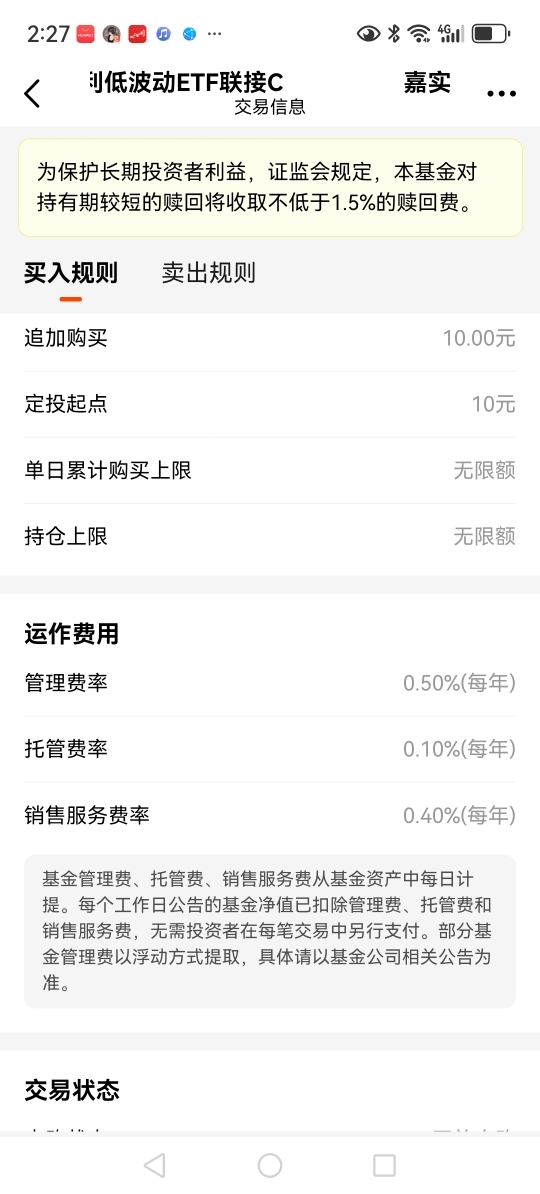 $嘉实沪深300红利低波动ETF联接C$求教一下10万块钱的本金,这个手续费一年