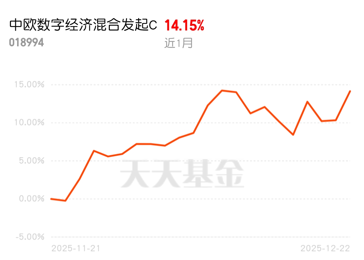 中际旭创 800G 硅光模块量产,成本大降 30%,切入国际高端供应链,中欧数字经济混合发起 C 近 1 个14.15%,抓牢企业成长红利。$中欧数字经济混合发起C$