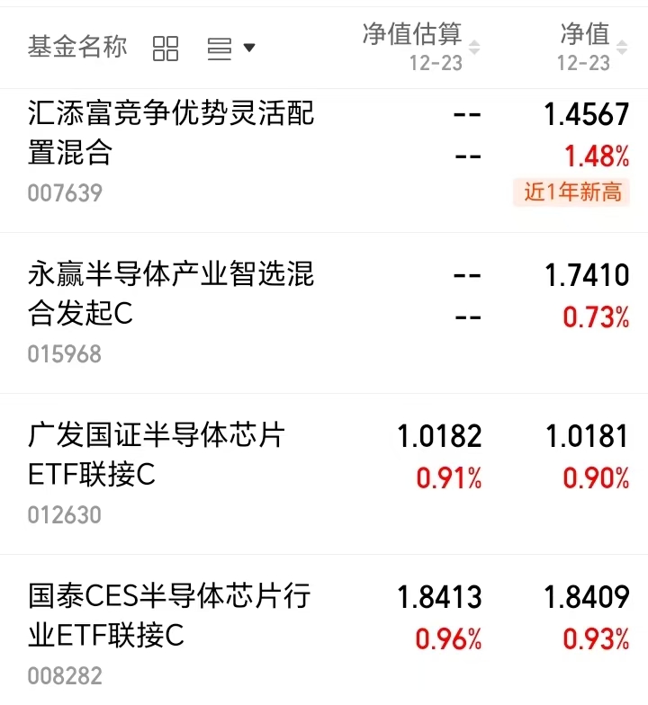 今天大盘指数全部都收涨了,看了下个股情况,竟然是跌多涨少的,特别是午后的时候挺多板块都回落比较明显的,不过还好半导体设备板块依然强势。$汇添富竞争优势灵活配置混合(OTCFUND|007639)$昨天全市场涨幅一哥,今天又涨了1.48%,这表现深得我心呀。