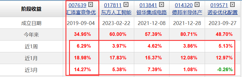 $德邦半导体产业混合发起式C(OTCFUND|014320)$ $永赢科技智选混合发起C(OTCFUND|022365)$ $诺安优化配置混合C(OTCFUND|019571)$ $东方人工智能主题混合C(OTCFUND|017811)$ $汇添富上证科创板芯片ETF发起式联接C(OTCFUND|020629)$