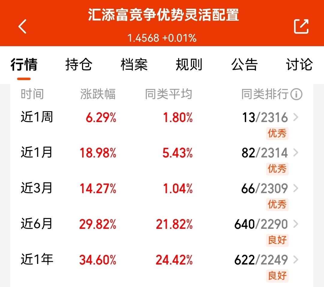 $汇添富竞争优势灵活配置混合(OTCFUND|007639)$ 投资方向聚焦"半导体设备",很好的把握住了"硬科技自主可控"核心主线,前面已连续上涨四个交易日了,周一更是大涨近7%,近一个月上涨超18%,高弹性,高爆发力特征明显,后续表现也非常值得期待。