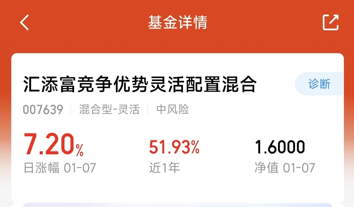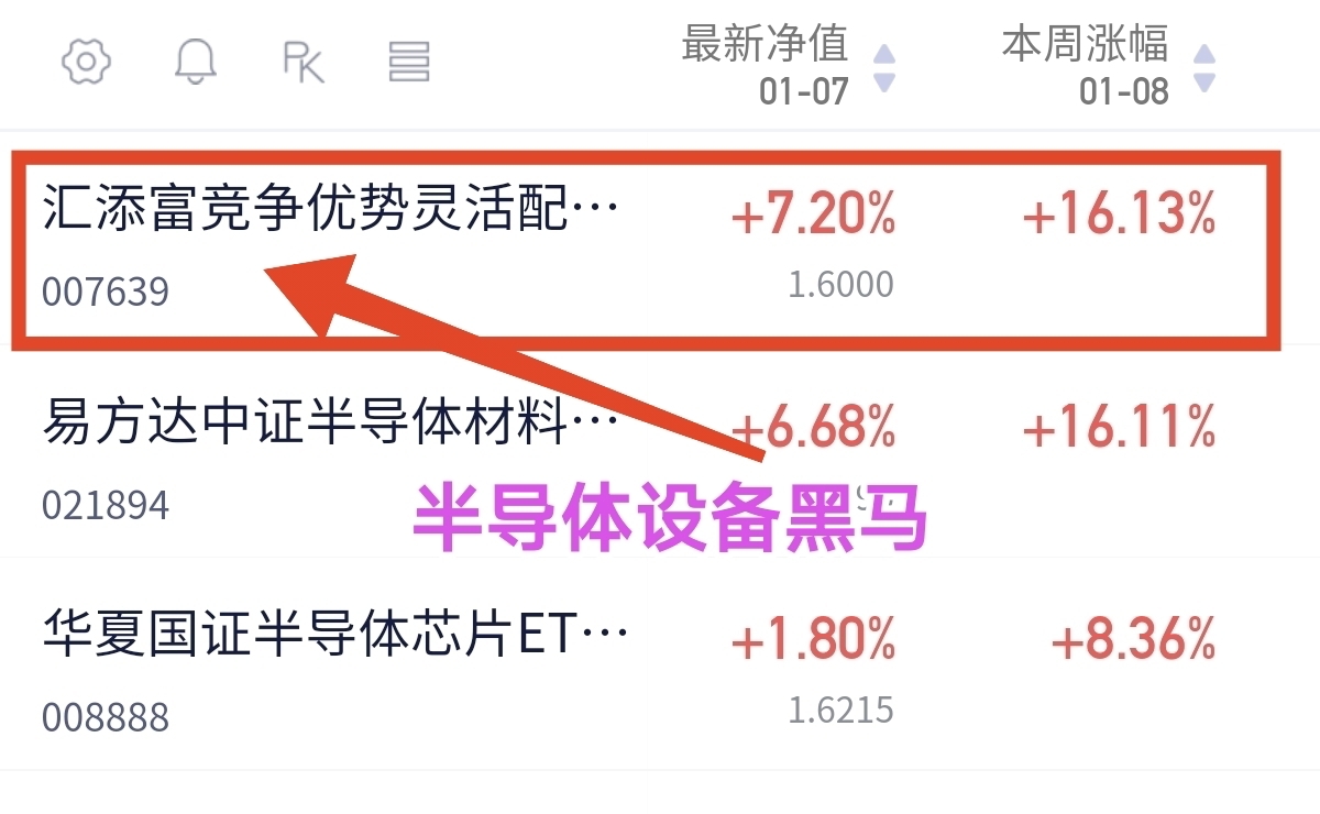 三大指数今天小幅震荡,最近表现强势的半导体,今天继续稳定上涨。特别是半导体设备表现的比较强!$汇添富竞争优势灵活配置混合$ 这只主动的科技混合基金。昨天上涨了7.2%,已经连续三连阳,大幅跑赢了同类永赢用先锋半导体的2.8%涨幅,近来的表现一直不错,近1月上涨了22.67%,基金目前主要聚焦半导体设备方向!昨天的涨幅也是跑赢了半导体设备指数涨幅,主动管理的基金上涨起来弹性大,我先建仓1000,我看好基金在今年半导体行情的表现!