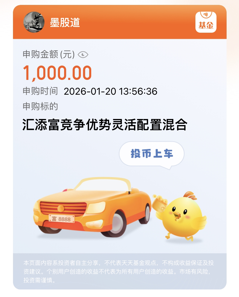 $汇添富竞争优势灵活配置混合(OTCFUND|007639)$也在我的加仓计划里,目前持有收益相当不错。从全年布局角度来看,当前入手这只基金的长期投资胜率较高,今天我打算继续加仓。