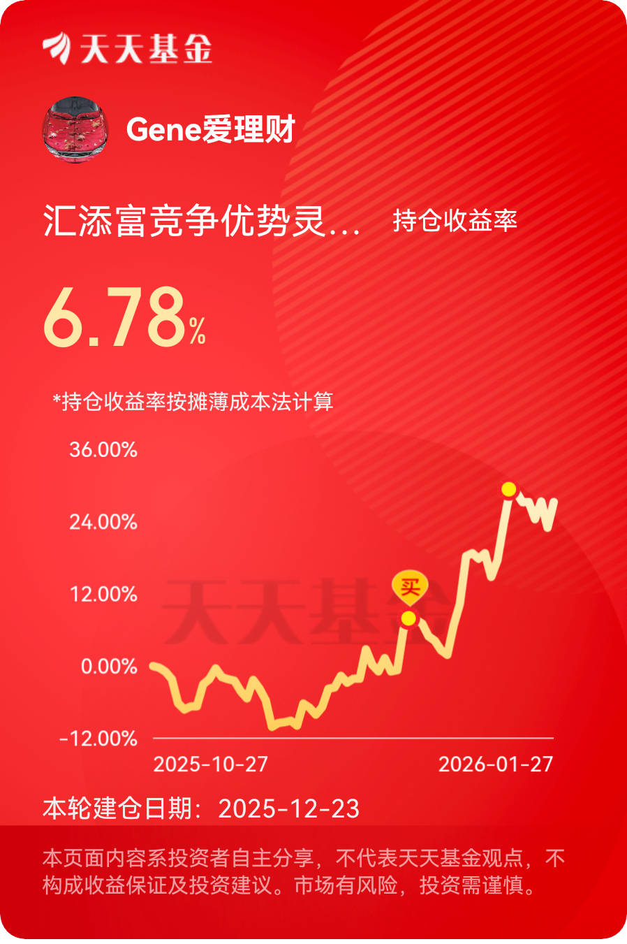 $汇添富竞争优势灵活配置混合$ #晒收益#