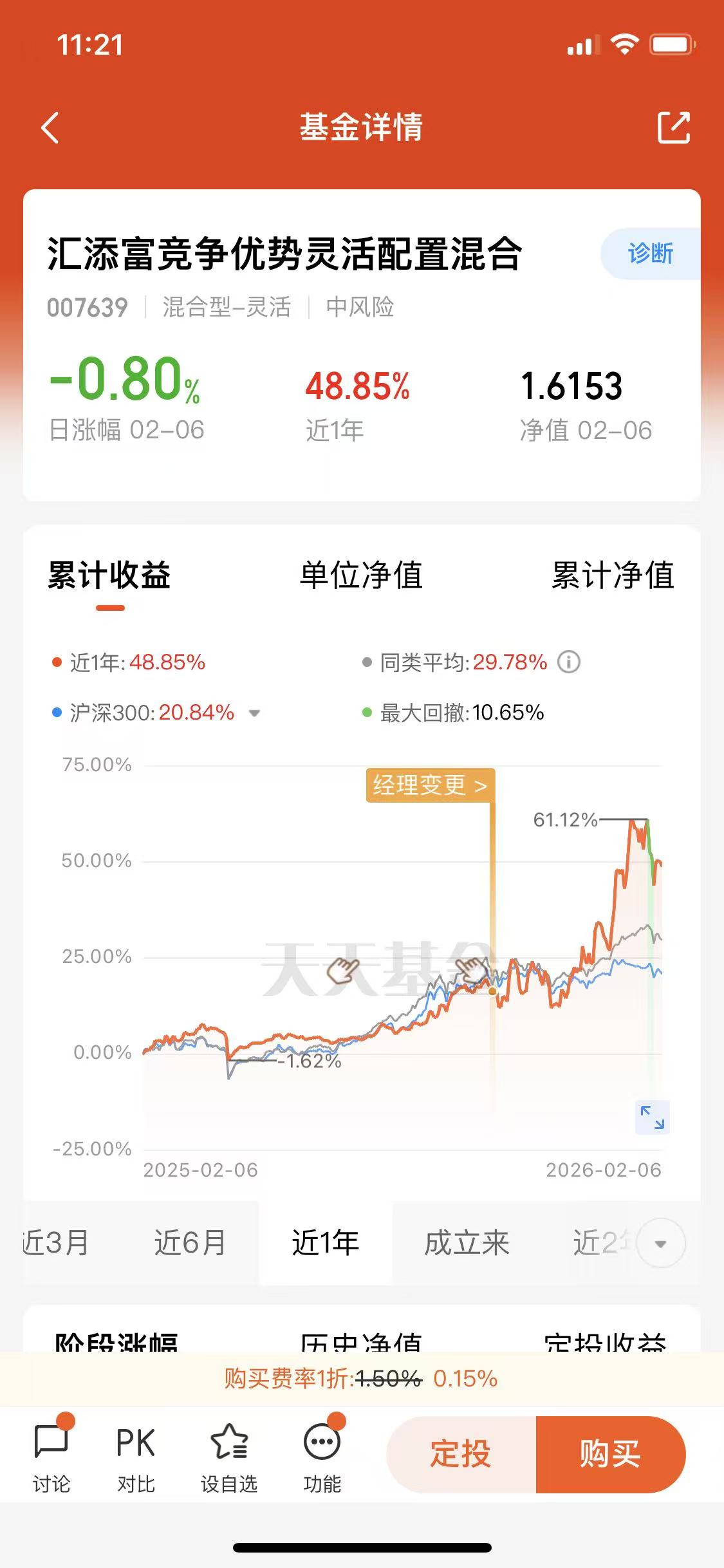 先看最直观的业绩——这只基金近一年涨了48.85%,别觉得这个数字普通,对比市面上不少同类科技基金,很多同期涨幅还停留在20%-30%区间,能冲到40%以上的真不算多。而且这个涨幅不是靠短期炒作冲上去的,是慢慢积累出来的,说明基金在选股和调仓上很稳,不是那种大起大落的,对咱们普通人来说,这种稳步上涨的基金持有起来更安心。