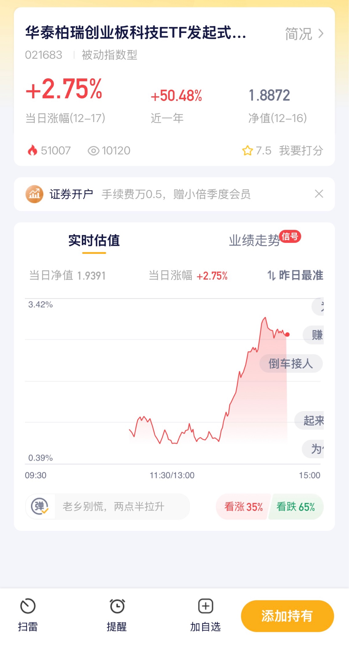 上涨超过100点,涨跌幅3.34%,整个市场的创新赛道都被带动起来了。现在创业板指里全是符合“三创四新”的优质企业,盈利增长和发展潜力都很突出,而且当前估值处于历史相对低位,安全边际还不错。想分享这份红利,又没精力研究个股的话,华泰柏瑞的相关产品是个好帮手,它能紧密跟踪指数走势,力求跟上板块的整体收益。C类产品操作起来方便,申购赎回都灵活,特别适合想小额试错、顺势布局的朋友,不过市场有波动,投资还是要谨慎哦