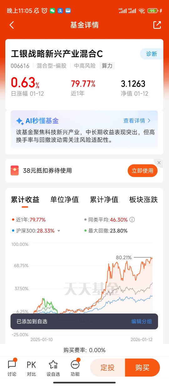 工银产业升级股票C(代码007675)成立于2019年12月25日,最新规模0.58亿元,基金经理为杜洋、高京霞、刘展硕。该基金聚焦产业升级主题,前十大重仓股主要集中在半导体、新材料、新能源等高成长性行业,如巨化股份、源杰科技、华鲁恒升等。