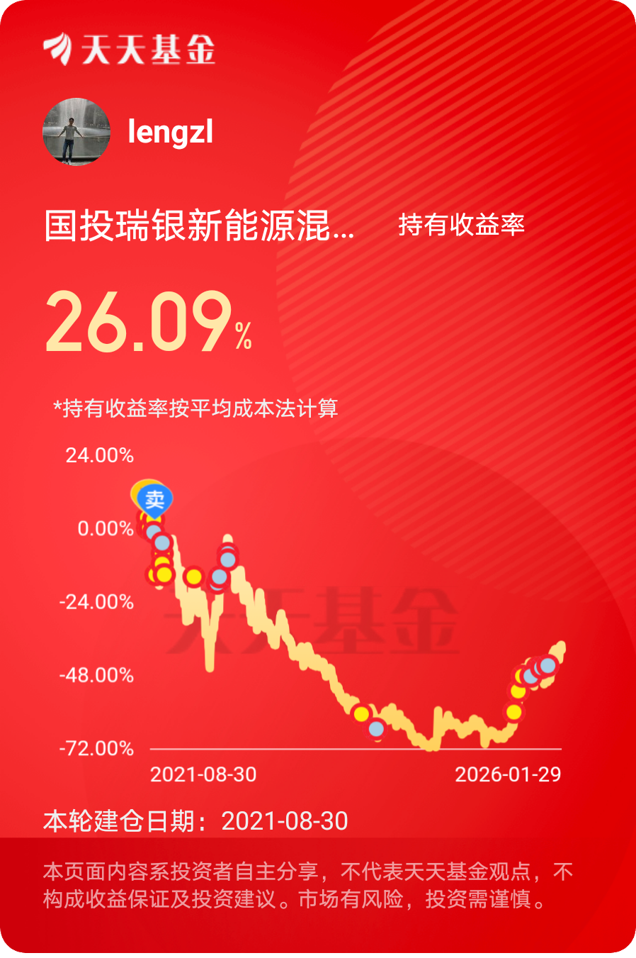 国投瑞银新能源有20%的收益了,但是最近感觉表现不佳,所以清仓先,回笼资金#晒收益#