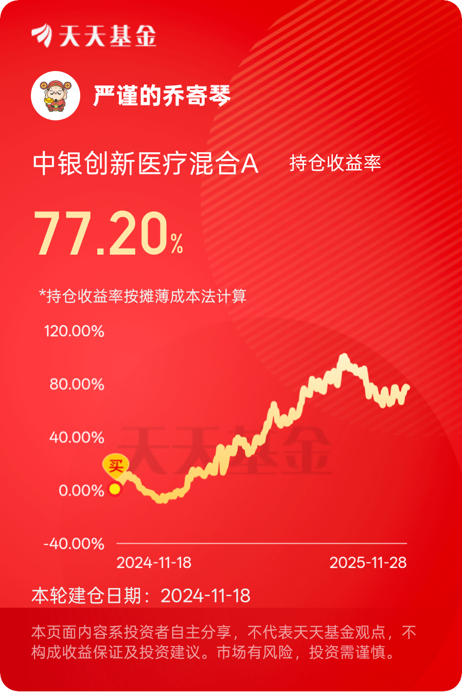 这周涨了6个多点,里领跑的存在了,调整得还没完全修复,期待继续涨$中银创新医疗混