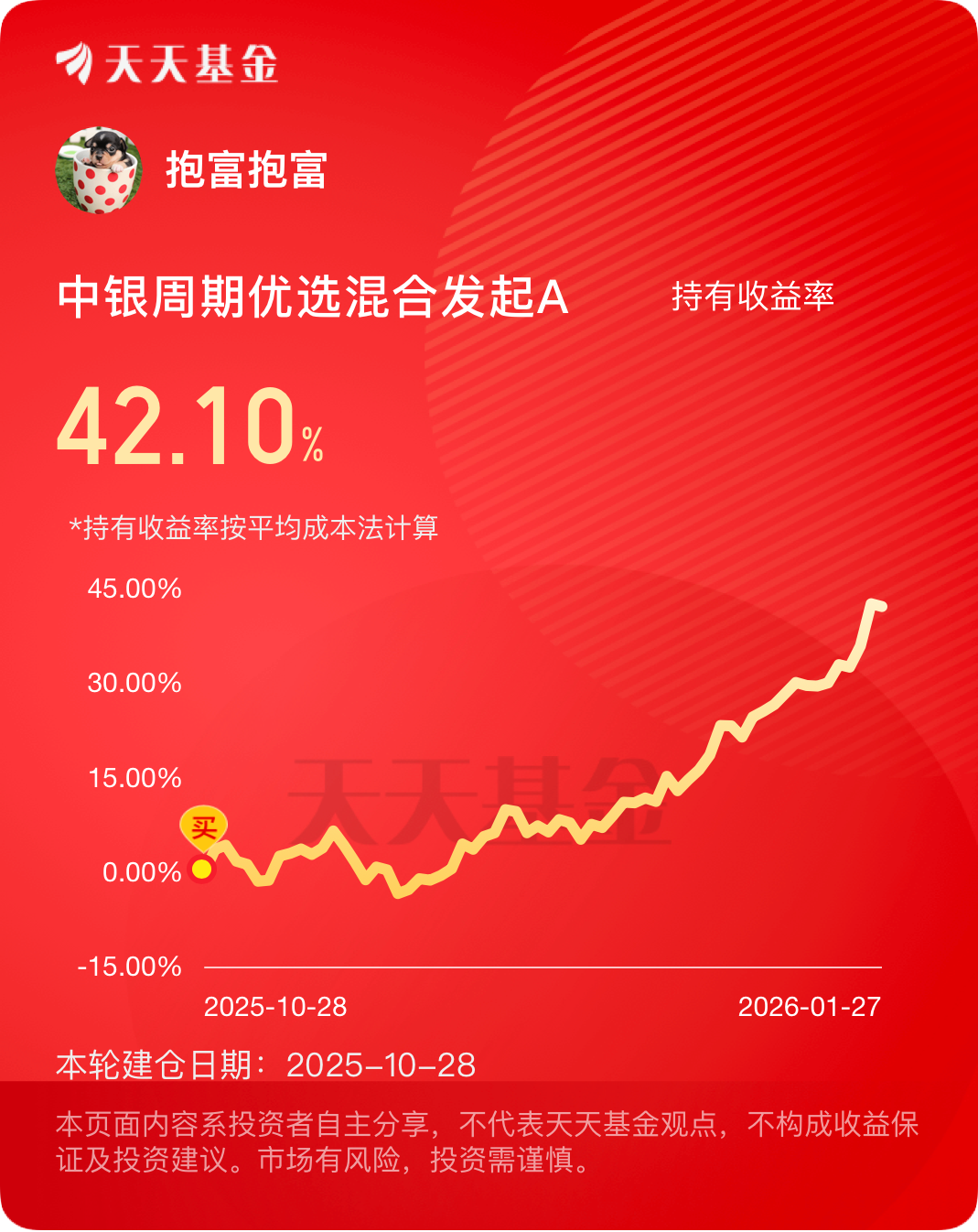 创新药我是不会放弃的,大家也都看过弹性了,继续拿住就可以了,他家的中银周期优选就很不错,也配置了,鸡蛋不能都放一个篮子,分散点投资!#晒收益#