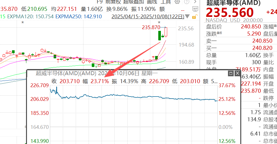 原文引用: 2025年10月6日,AMD与OpenAI宣布达成部署6吉瓦GPU的战略合作。“AMD +5%,在OAI(OpenAI)新闻后有很好的跟进... Chiplet战略... 理论上会比NVDA的单片式设计有更快的迭代速度和更好的晶圆利用率。”