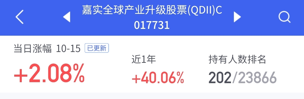 全球市场调整期暗藏结构性机会。$嘉实全球产业升级股票发起式(QDII)C$ 持仓覆盖英伟达、美光科技等科技龙头,凭“全球灵活布局”立足——2024年受益美股半导体18.1%增长,今年锚定港股科技15%收入增速标的。今天更新净值2.08%跑赢同类,未来AI驱动芯片需求,配置价值凸显。