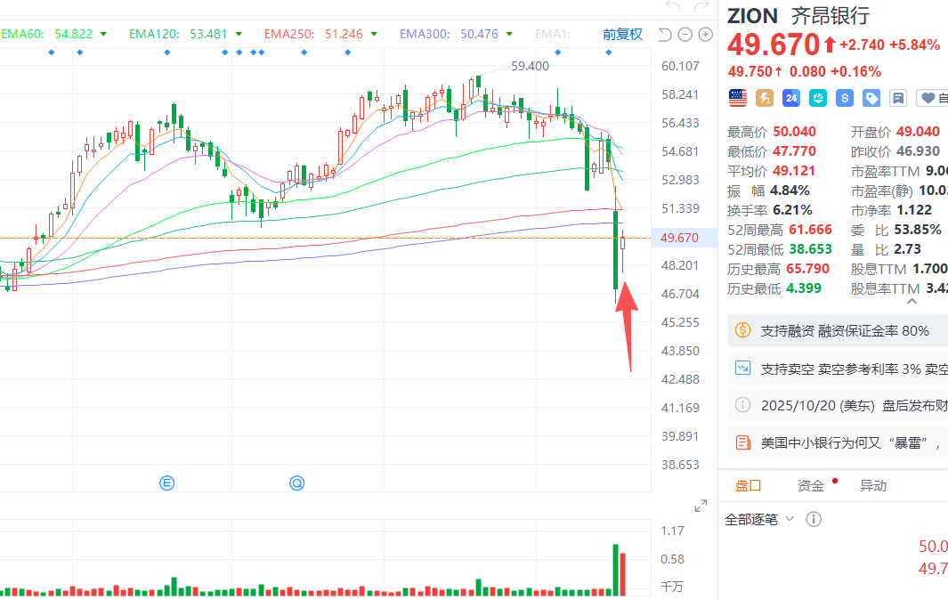 市场上周对Zions银行等暴露出的信贷风险感到担忧,周四银行板块大跌。但我认为,这此事件更像是个别银行自身风控的问题,与2023年硅谷银行那种系统性流动性危机有本质区别。上周大型银行的三季报业绩强劲,也侧面印证了这一点。暴雷的银行在周五出现了修复反弹。后续需要密切关注其他中小银行的财报,看看小银行信贷风险是否是个例。
