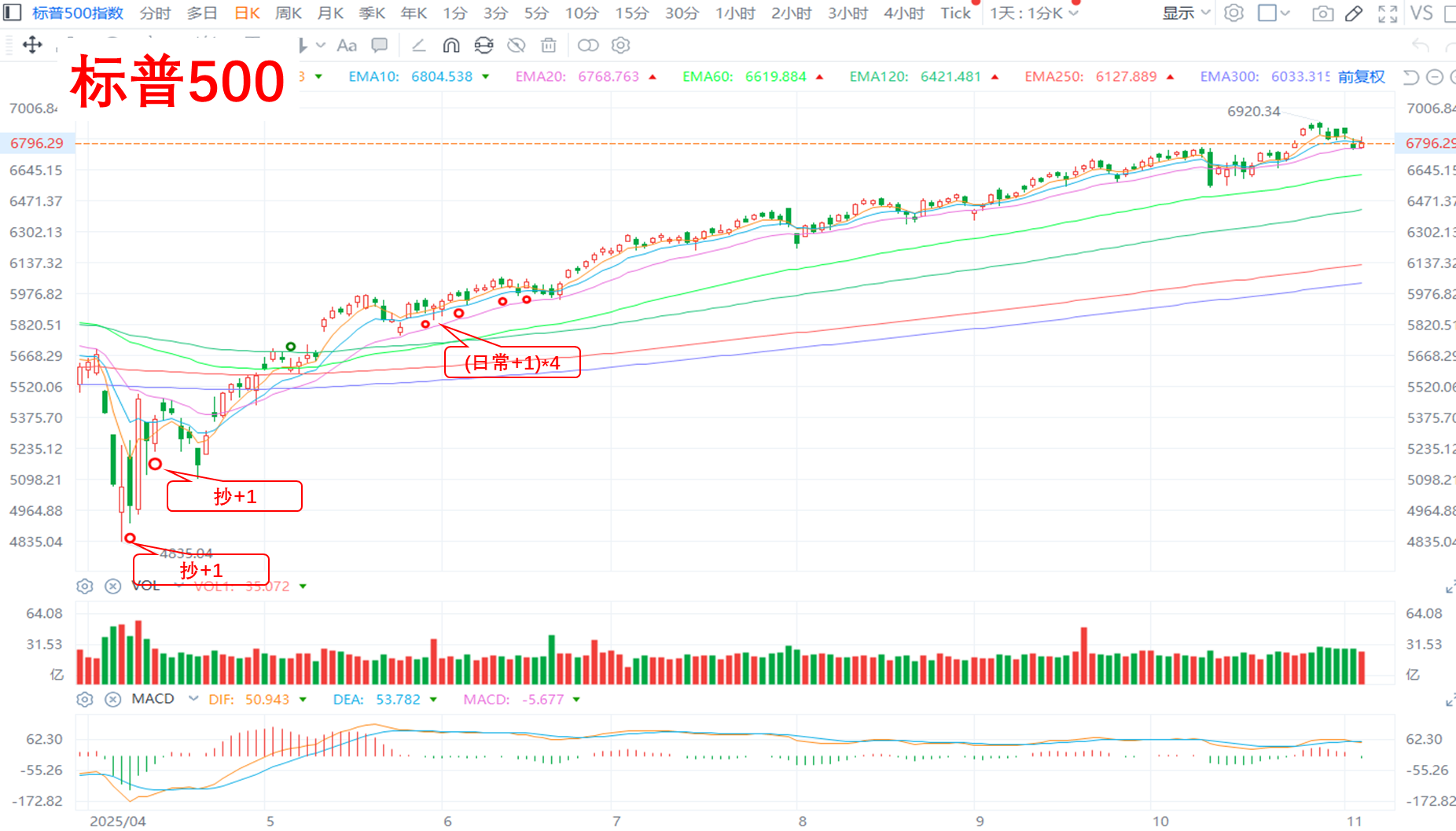 保持定投策略,11月通常美股比较强势,目前只有妖风,不打雷不下雨的,我保持乐观。
