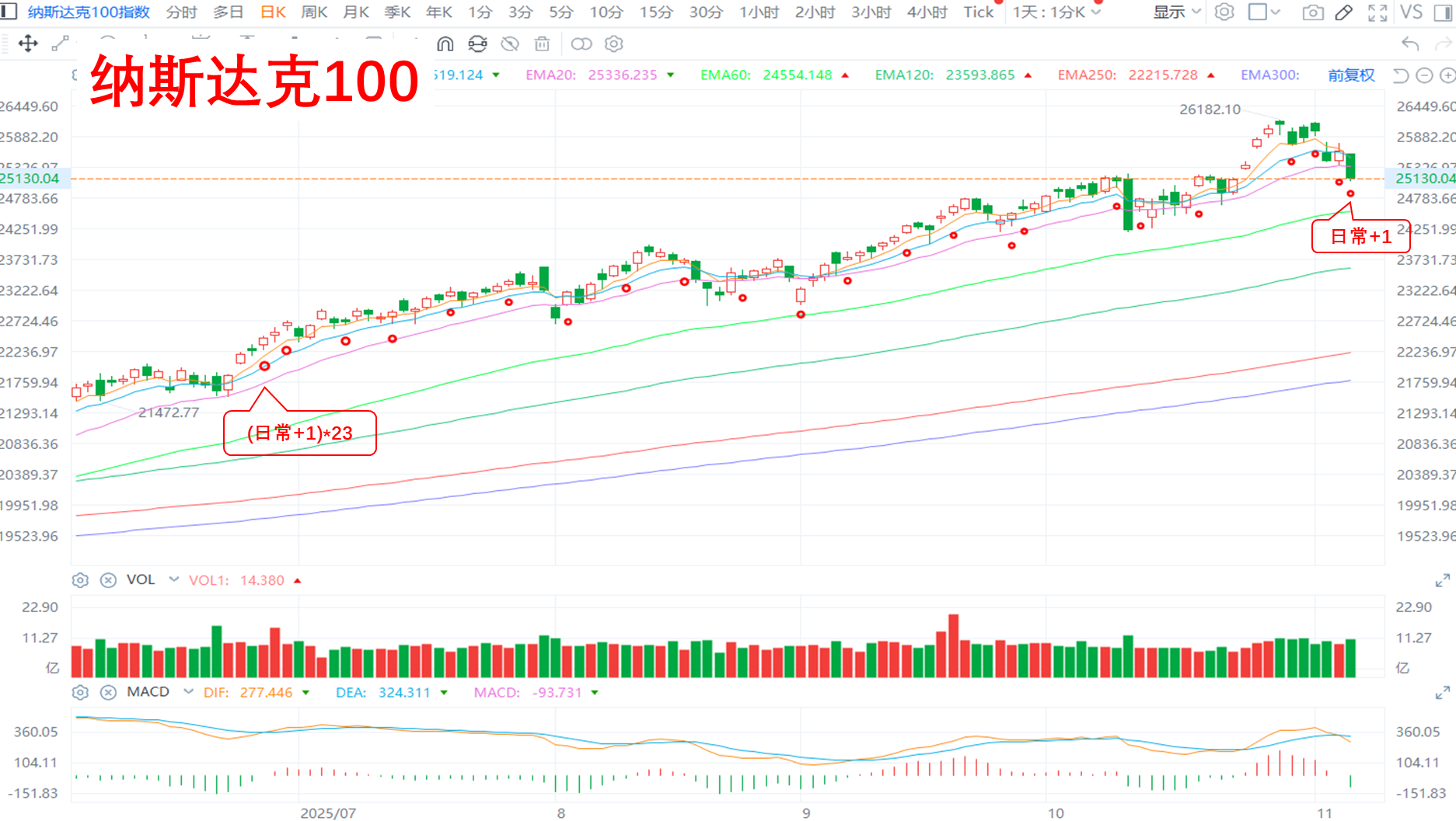 2. 纳指100:基础日常部分,今日+1,本周已+3。