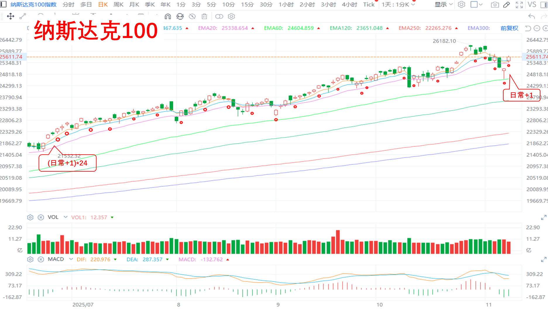 2. 纳指100:基础日常部分,本周已+1。
