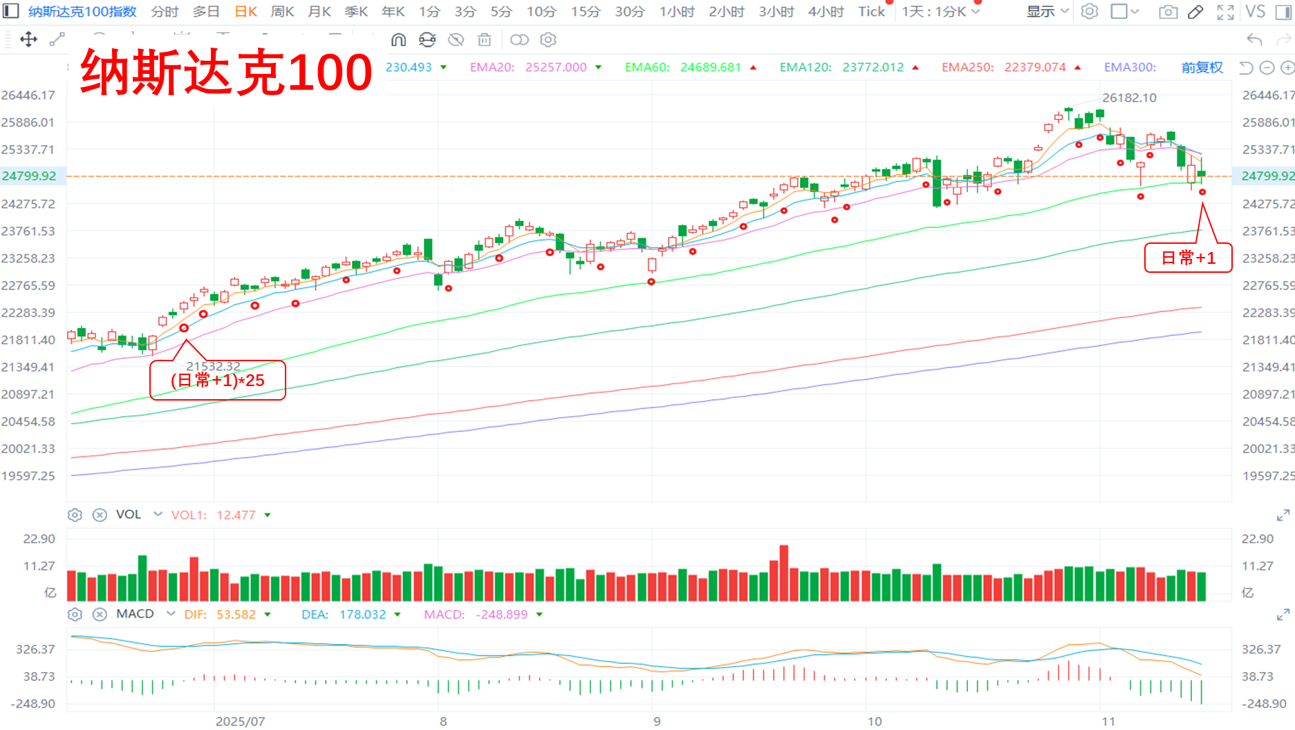 2. 纳指100:基础日常部分,今日+1。