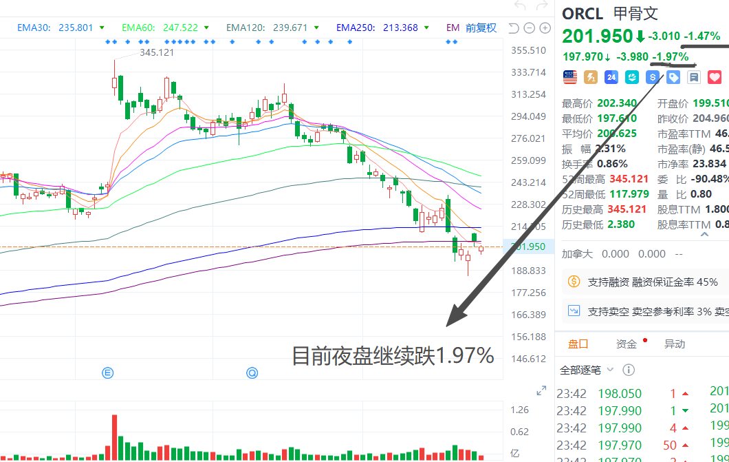 甲骨文跌,主要还是因为举债买GPU芯片的问题。