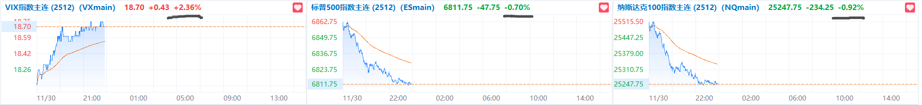 今天美股盘前,股指期货持续走低,纳指期货跌1%。