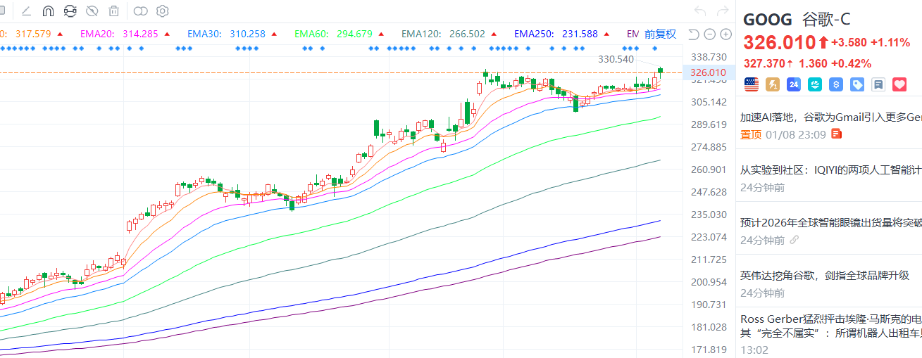 谷歌昨晚上涨,超过苹果,成为美股第二大权重。