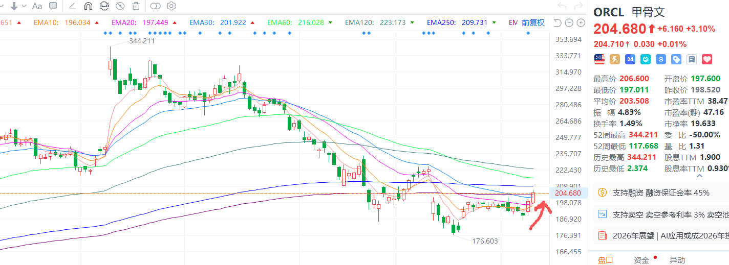 甲骨文昨天大涨,观察到五/今天有大量2月到期的200/230看涨期权价差交易。