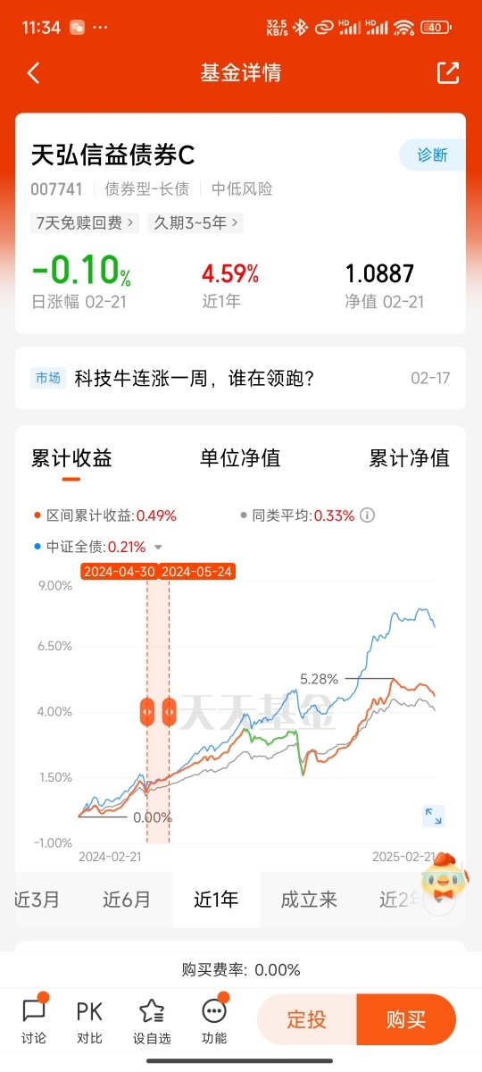 本周$天弘信益债券C$下跌0.342月19日,国债期货收盘多数上涨,30年期主力