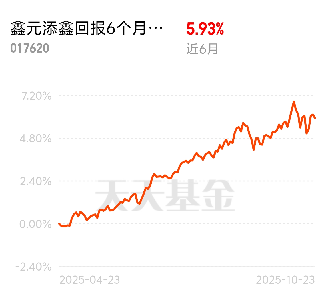 市场震荡着往前走,没点定力真容易踏空。鑫元添鑫回报6个月持有期混合C近6个月5.